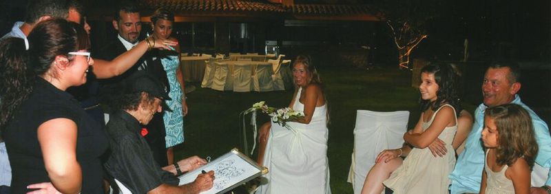 Busques un caricaturista pel teu casament? A diverfesta, et donem l'oportunitat de llogar un caricaturista a hores que faci retrats a tots els vostres convidats. Es pot realitzar en el moment de l'apertiu, el banquet o l’estona que trieu. Serà un gran regal per a ells, i un record inoblidable d’aquest dia.